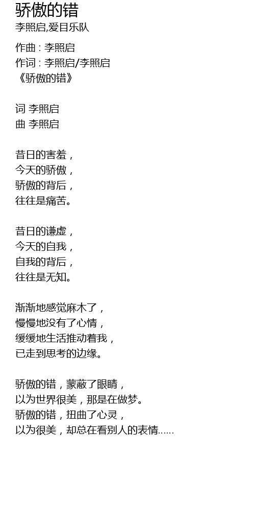 | jiāo ào de cuò, méng bì le yǎn jīng, | |