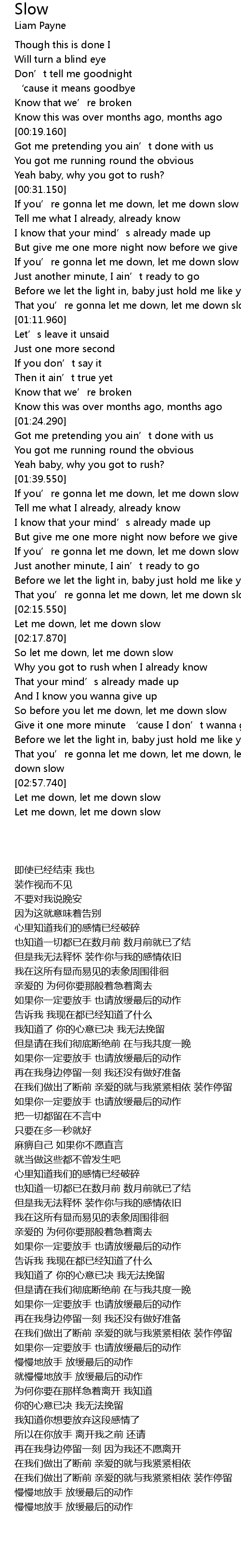 | [02:53.160] | That you' re gonna let me down, let me down, let me down, let me down slow |