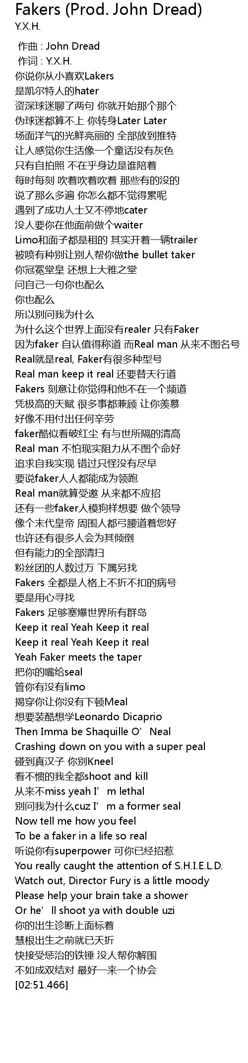 | [01:54.854] | Fakers quán dōu shì rén gé shàng bù zhé bù kòu de bìng hào |