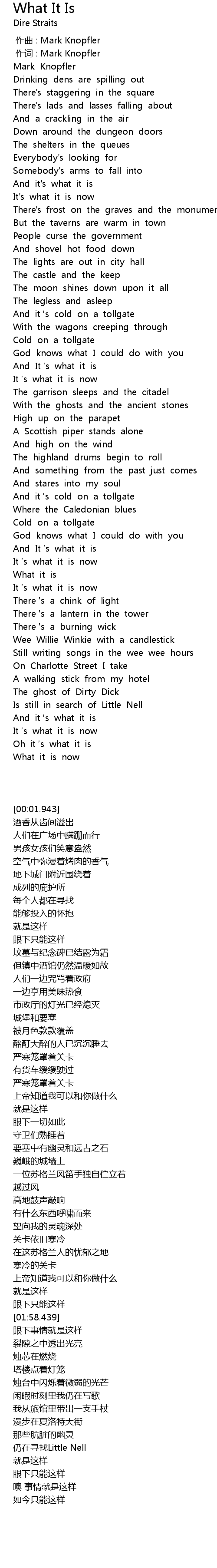 | [00:00.647] | 作词 : Mark Knopfler |