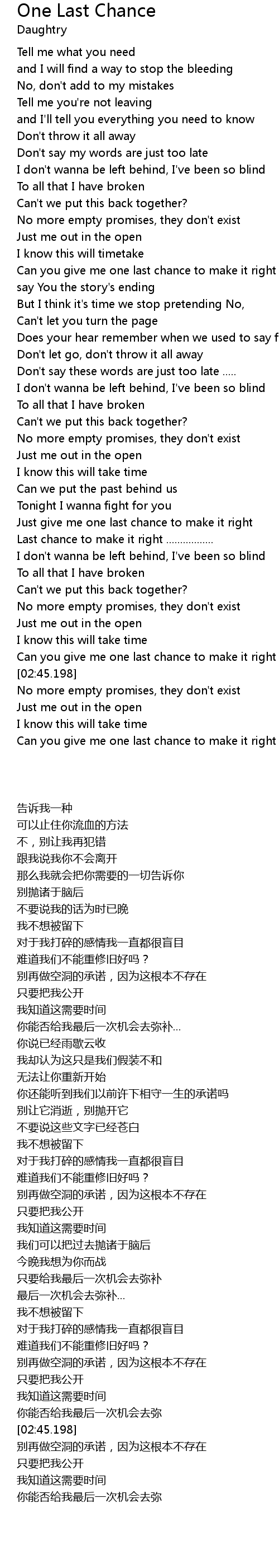 Can you give me one last chance to make it right ............ |