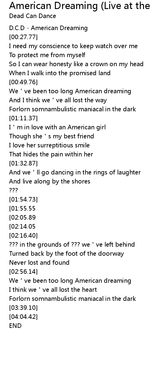 | Song | American Dreaming (Live at the Mayfair Theatre) |