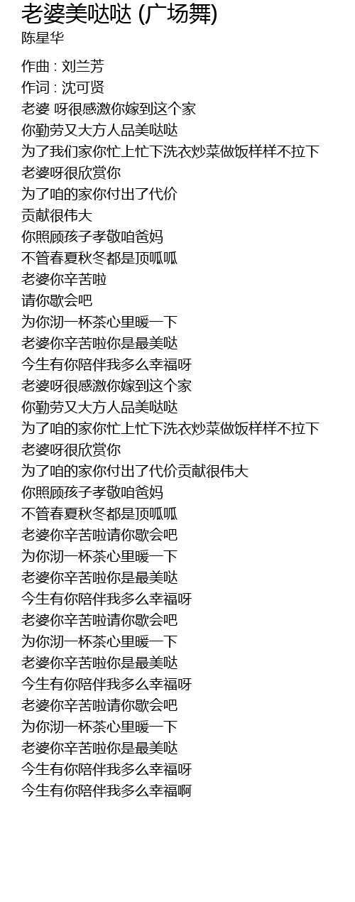 | lǎo pó nǐ xīn kǔ la nǐ shì zuì měi dā | |