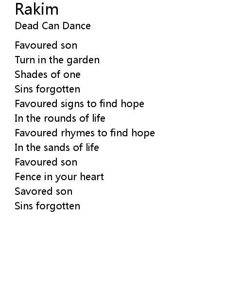 | Favoured rhymes to find hope | |