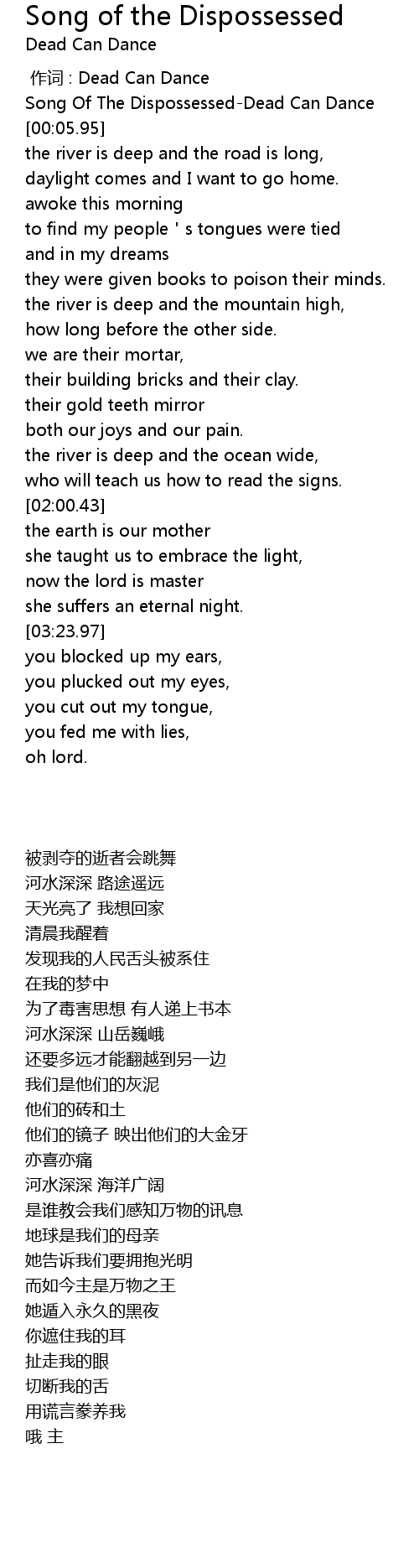| [00:00.00] | Song Of The DispossessedDead Can Dance |