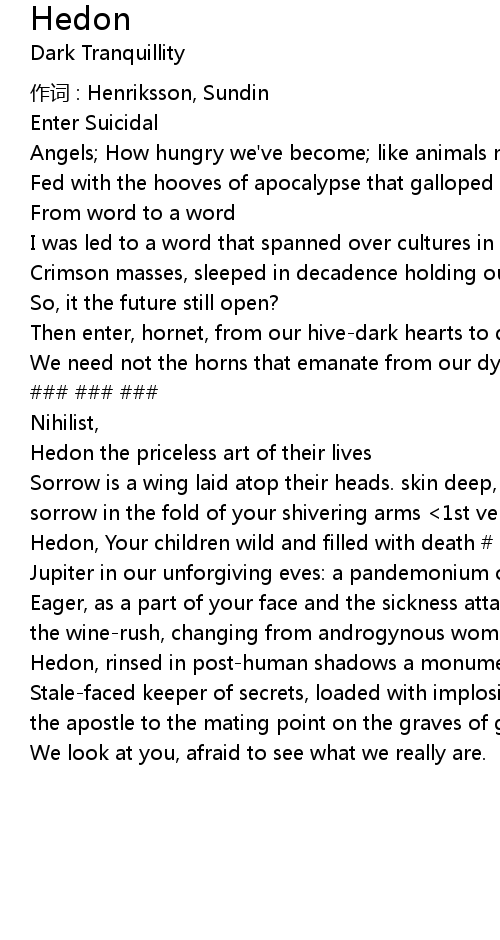 | Hedon, Your children wild and filled with death # | |