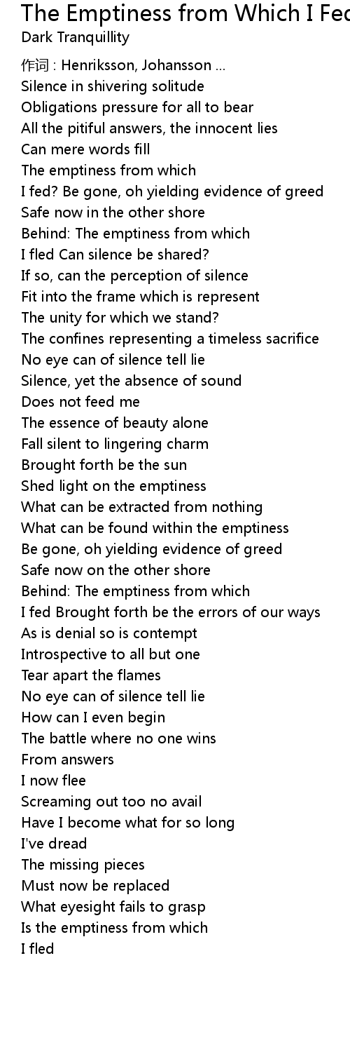 | Song | The Emptiness from Which I Fed |