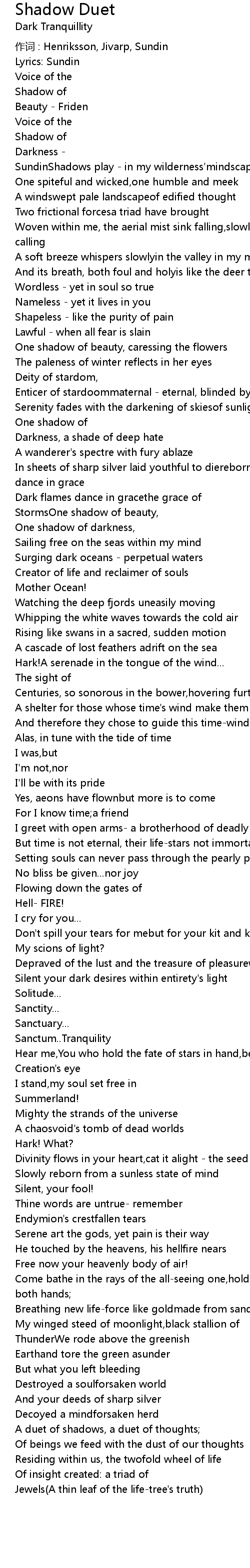 | Serenity fades with the darkening of skiesof sunlight nocturnal | |