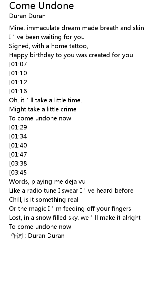 | [01:26] | To come undone now |