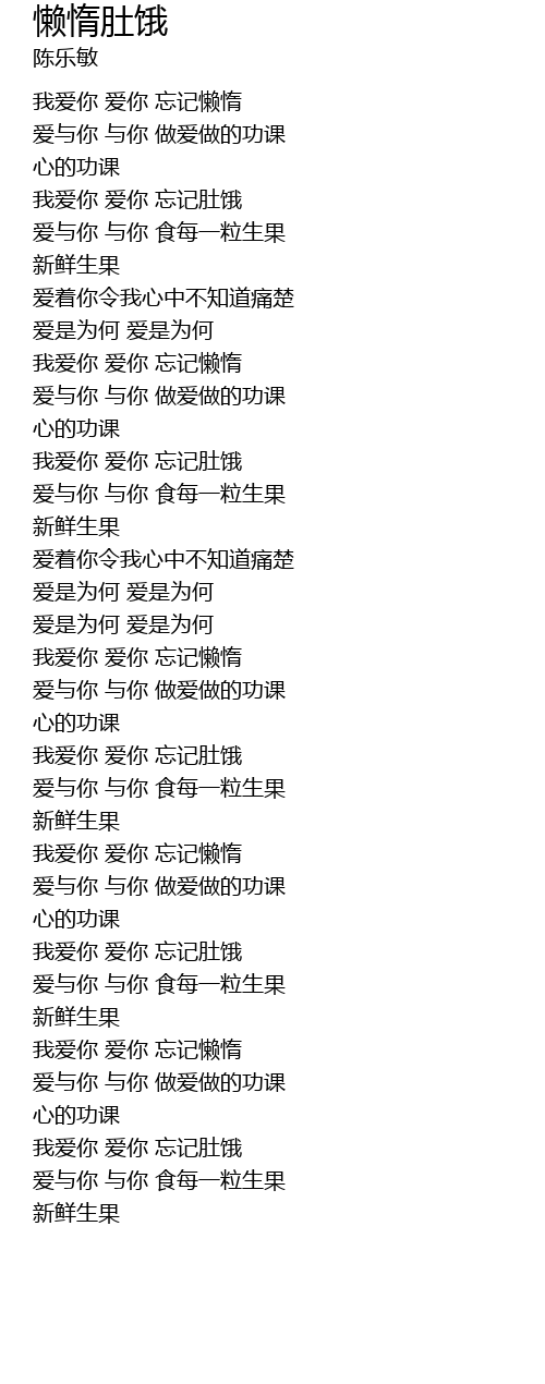 | [03:06.490] | 我爱你 爱你 忘记肚饿 |