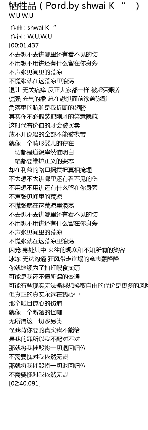 | [00:00.000] | zuò qǔ : shwai K'' |
