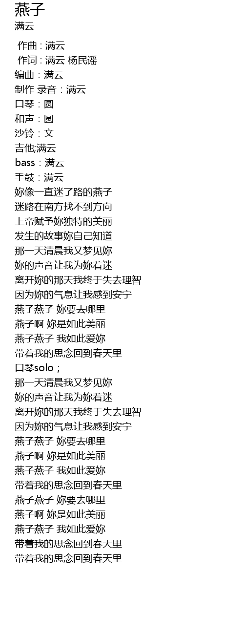 | [03:17.019] | 燕子燕子 我如此爱妳 |