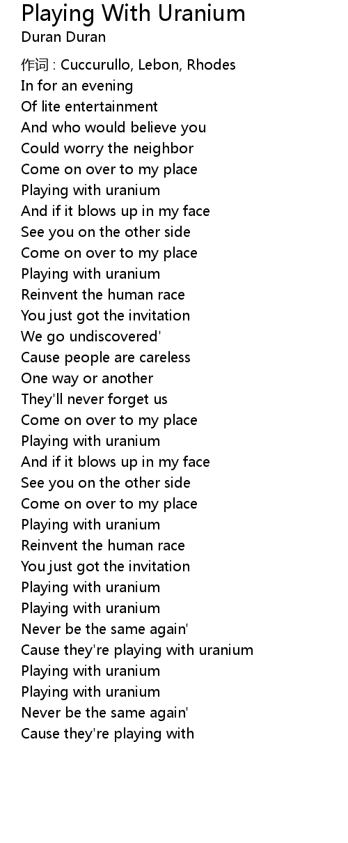 | Song | Playing With Uranium |