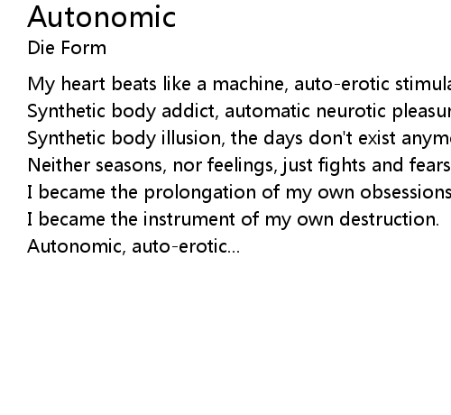 | My heart beats like a machine, auto-erotic stimulation, | |