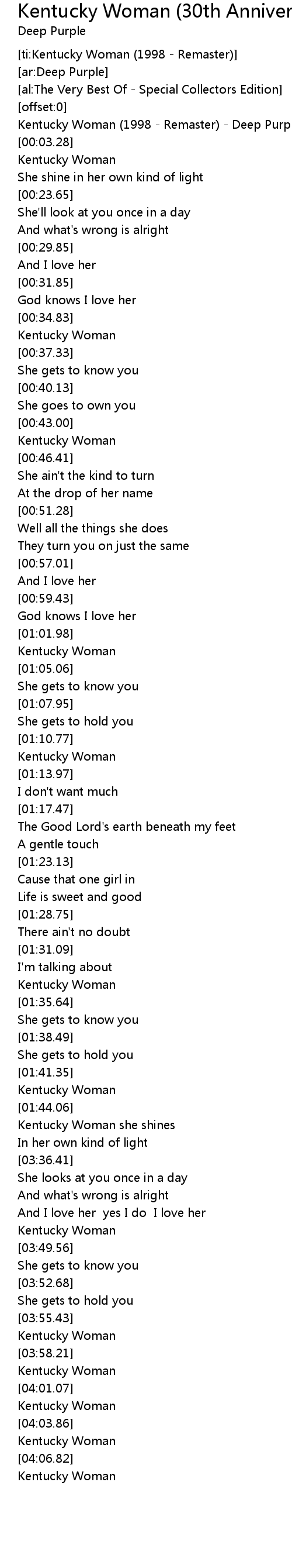 [ti:Kentucky Woman (1998 - Remaster)] |