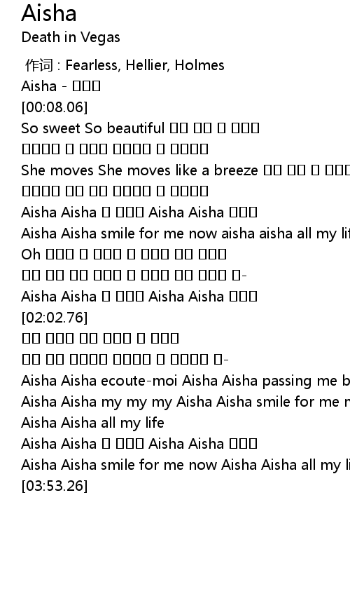 | [01:52.54] | Aisha Aisha Aisha Aisha |