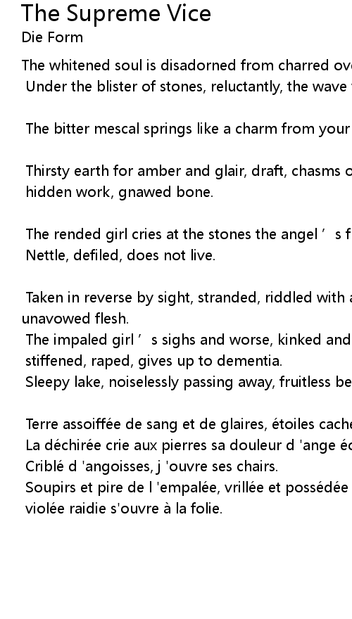 | The rended girl cries at the stones the angel ’s flesh : flayed. | |