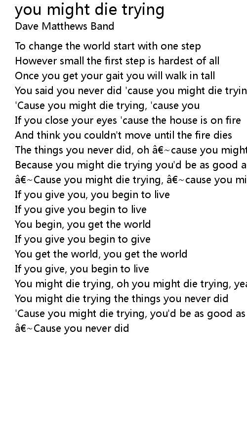 | â€~Cause you might die trying, â€~cause you might die trying | |