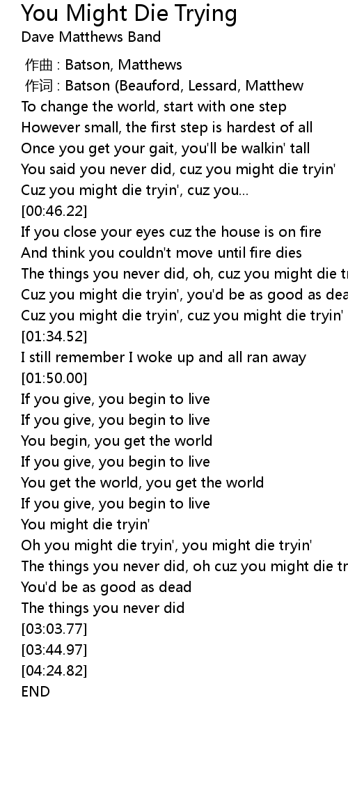 | [01:27.23] | Cuz you might die tryin', cuz you might die tryin' |