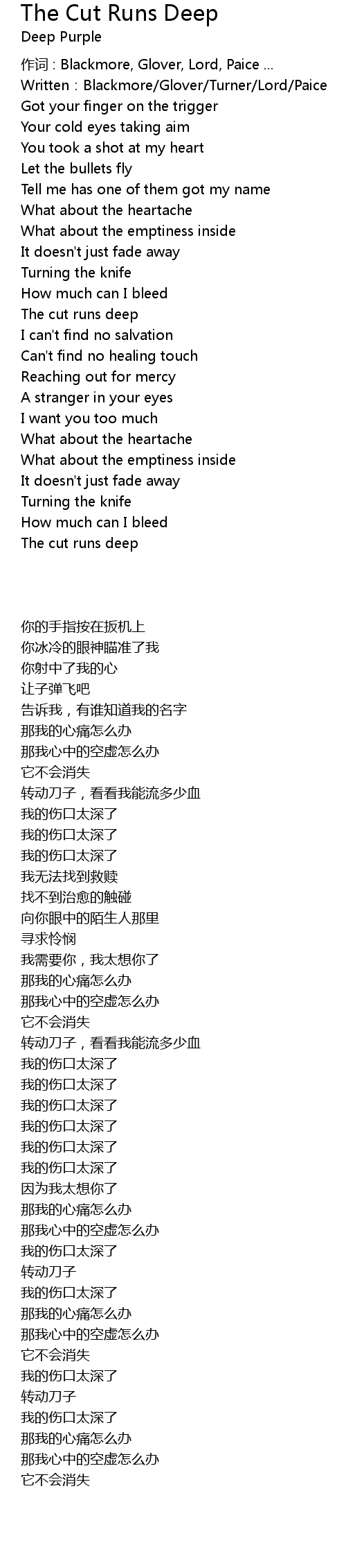 | Song | The Cut Runs Deep |