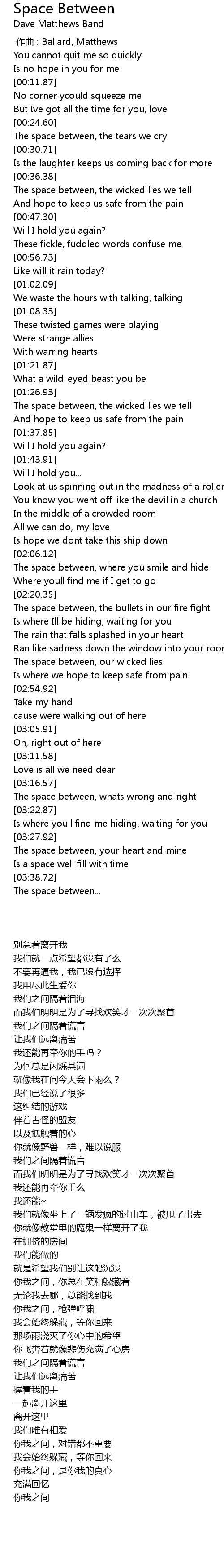 | [00:36.88] | The space between, the wicked lies we tell |