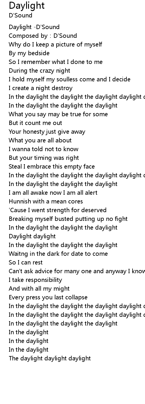 | [04:09.341] | The daylight daylight daylight |