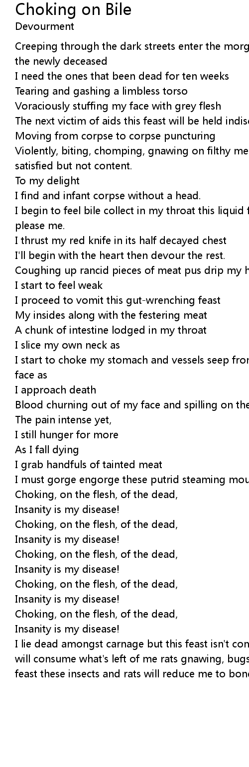 I start to choke my stomach and vessels seep from my neck blood pours from my face as |