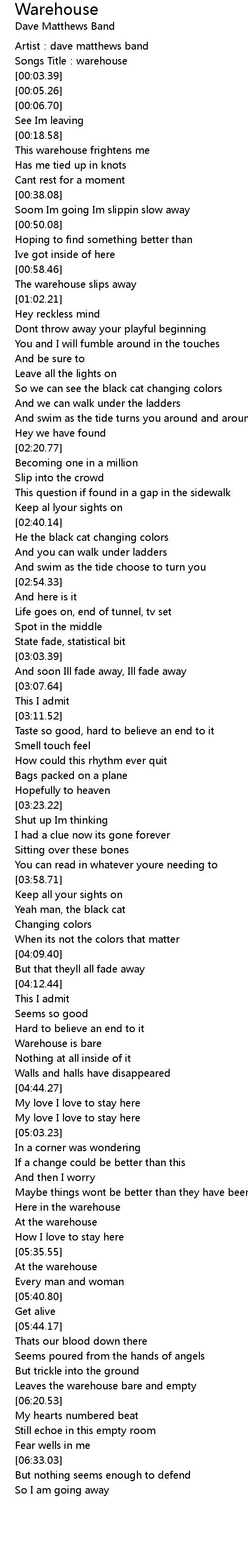| [06:17.78] | Leaves the warehouse bare and empty |
