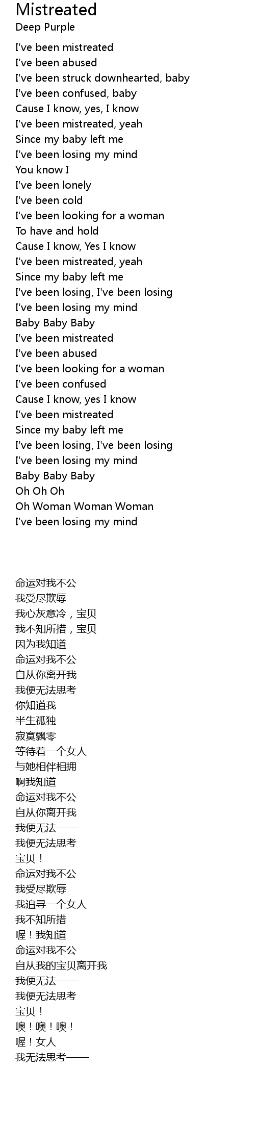 I've been mistreated, yeah |