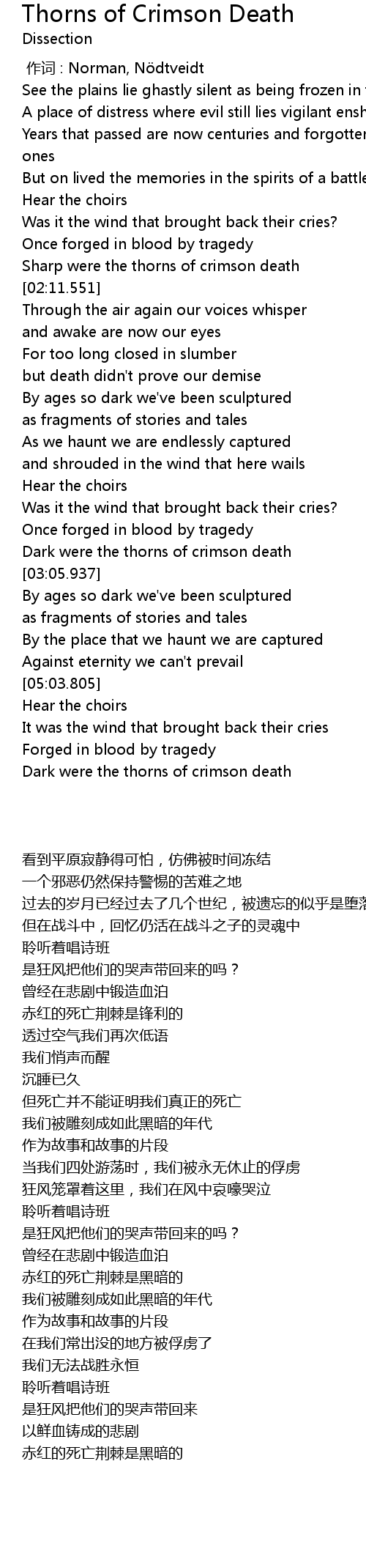 | [02:06.168] | Sharp were the thorns of crimson death |