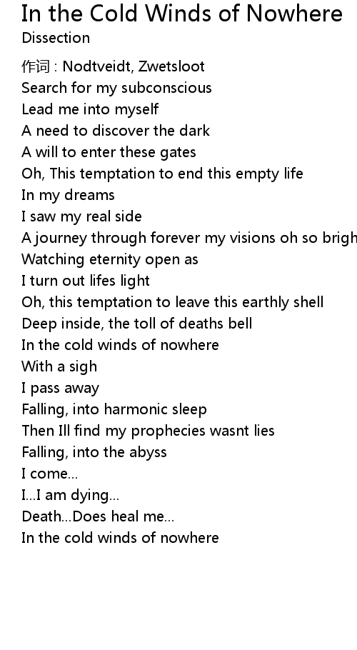 | Song | In the Cold Winds of Nowhere |