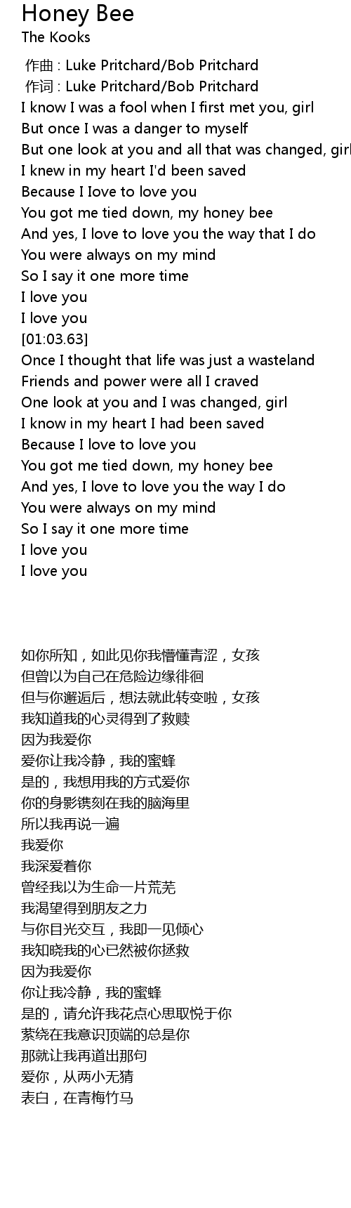 | [00:01.000] | zuò cí : Luke Pritchard Bob Pritchard |