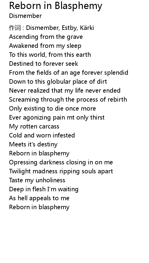 | Reborn in blasphemy |