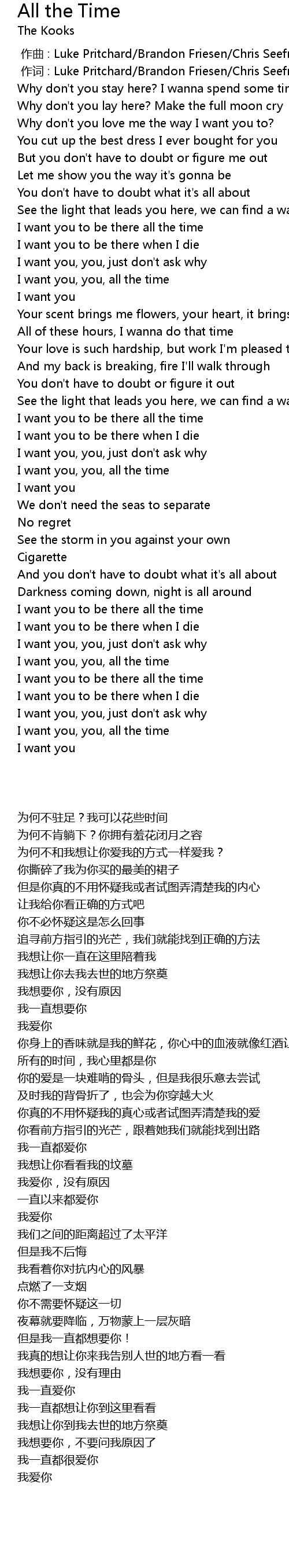 | [03:23.38] | I want you, you, all the time |