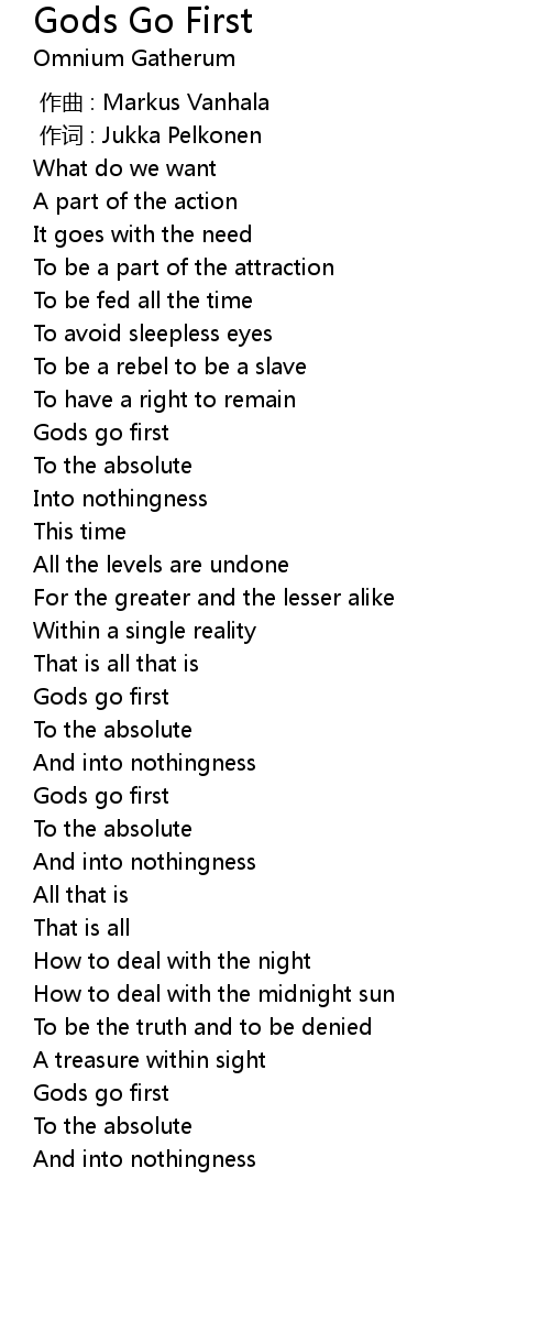 | [01:04.000] | Gods go first |