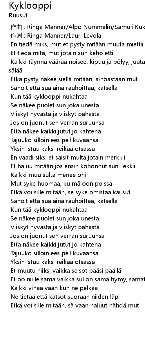 | [00:00.000] | zuo qu : Ringa Manner Alpo Nummelin Samuli Kukkola Miikka Koivisto |
