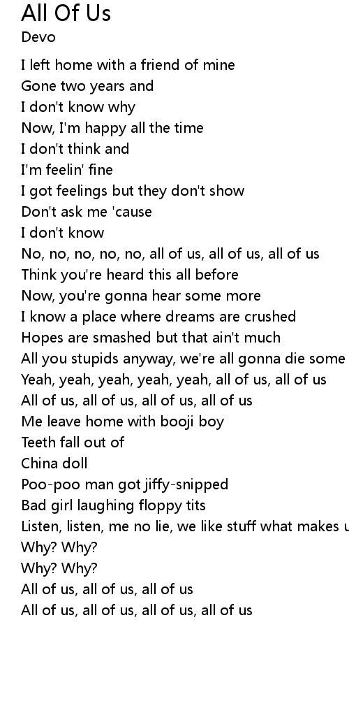 Yeah, yeah, yeah, yeah, yeah, all of us, all of us