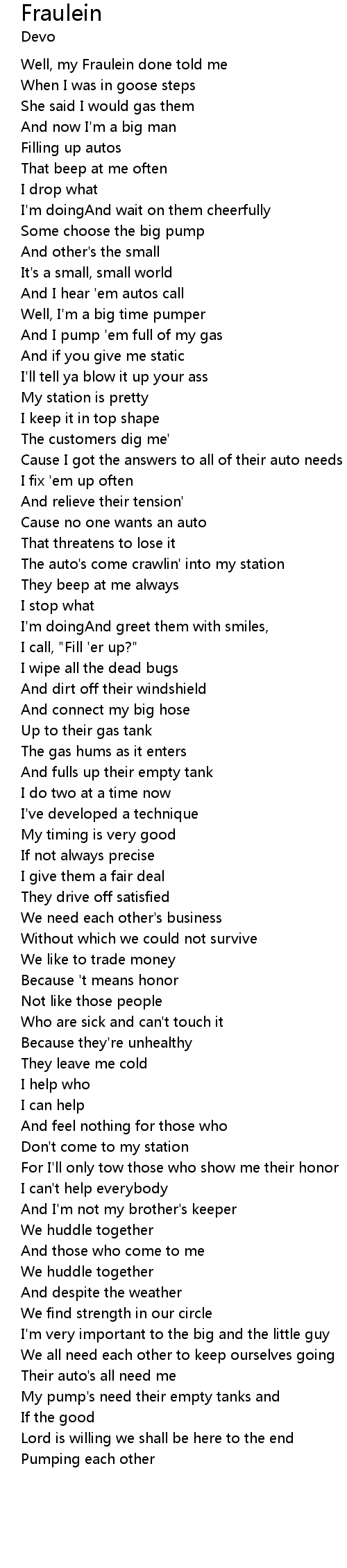 Well, my Fraulein done told me |