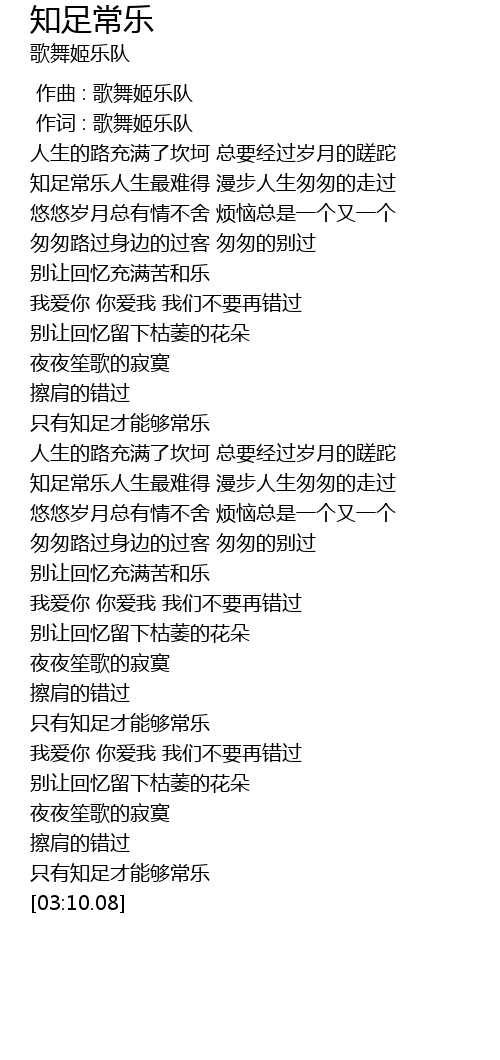 | [03:03.06] | zhǐ yǒu zhī zú cái néng gòu cháng lè |