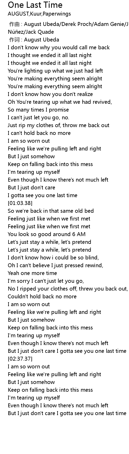 | [03:09.42] | But I just don' t care I gotta see you one last time |