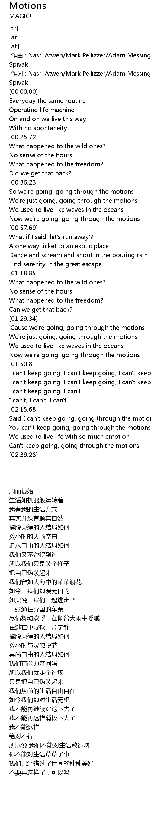 | [02:15.71] | Said I can' t keep going, going through the motions |