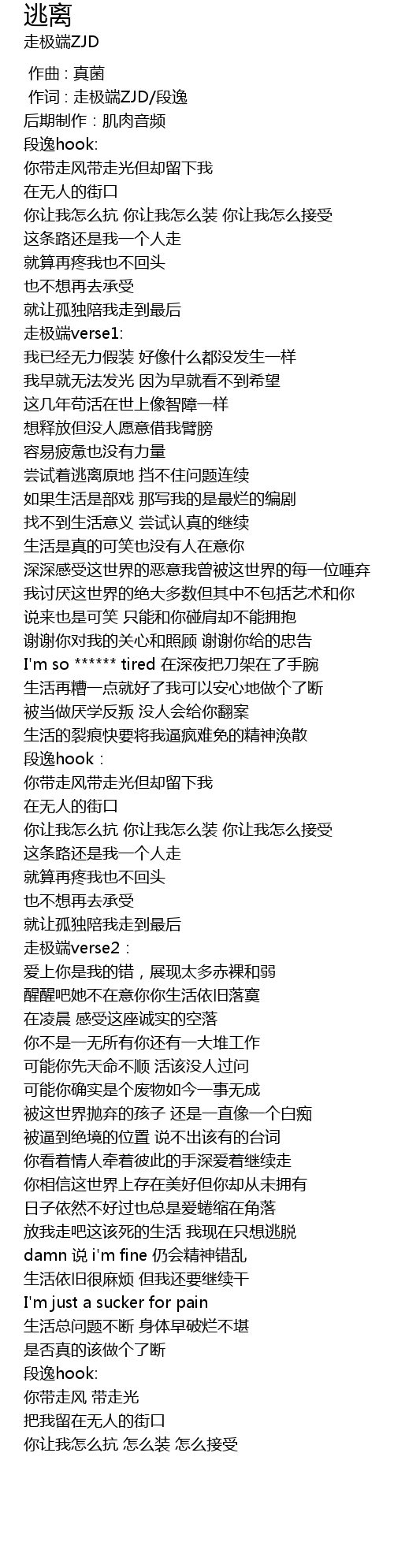 | [00:01.000] | 作词 : 走极端ZJD/段逸 |