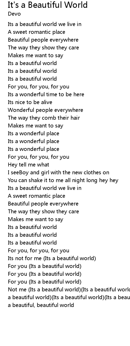 Not me (Its a beautiful world)(Its a beautiful world)(Its a beautiful world)(Its a beautiful world)(Its a beautiful world)(Its a beautiful, beautiful world)(Its a beautiful, beautiful world |