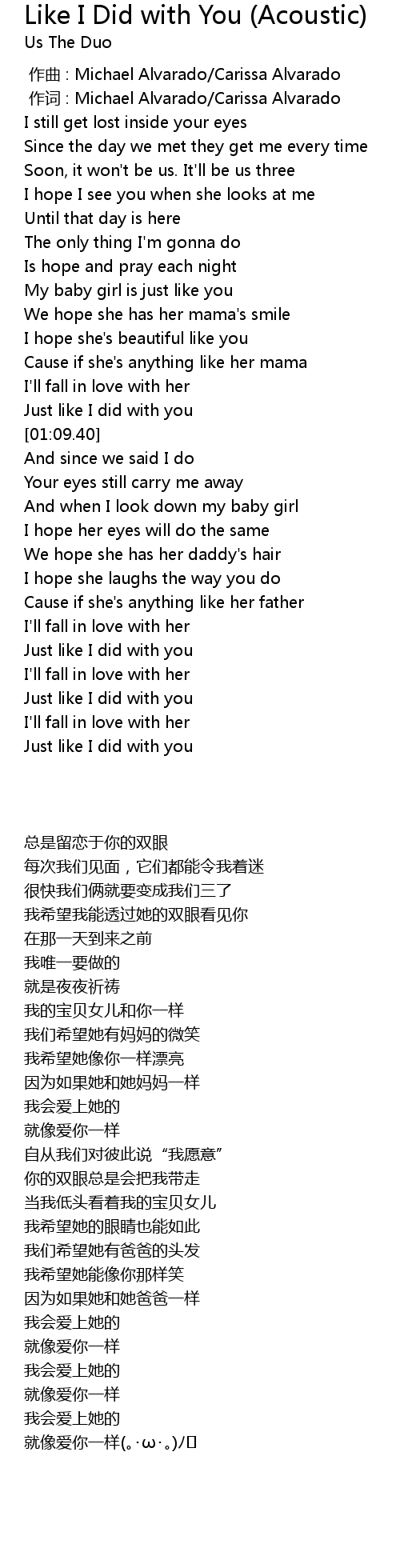 | [00:01.000] | 作词 : Michael Alvarado/Carissa Alvarado |