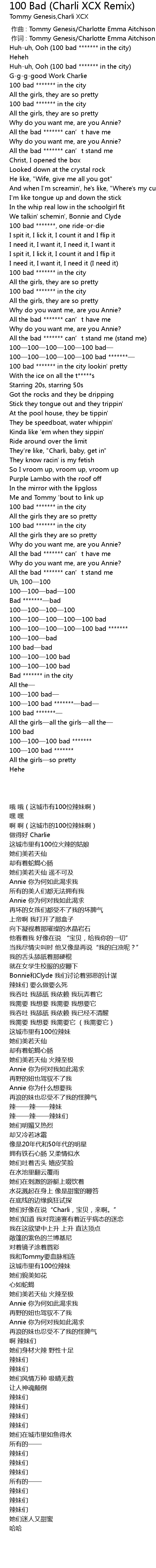 | [02:53.83] | 100—100 bad ******* |