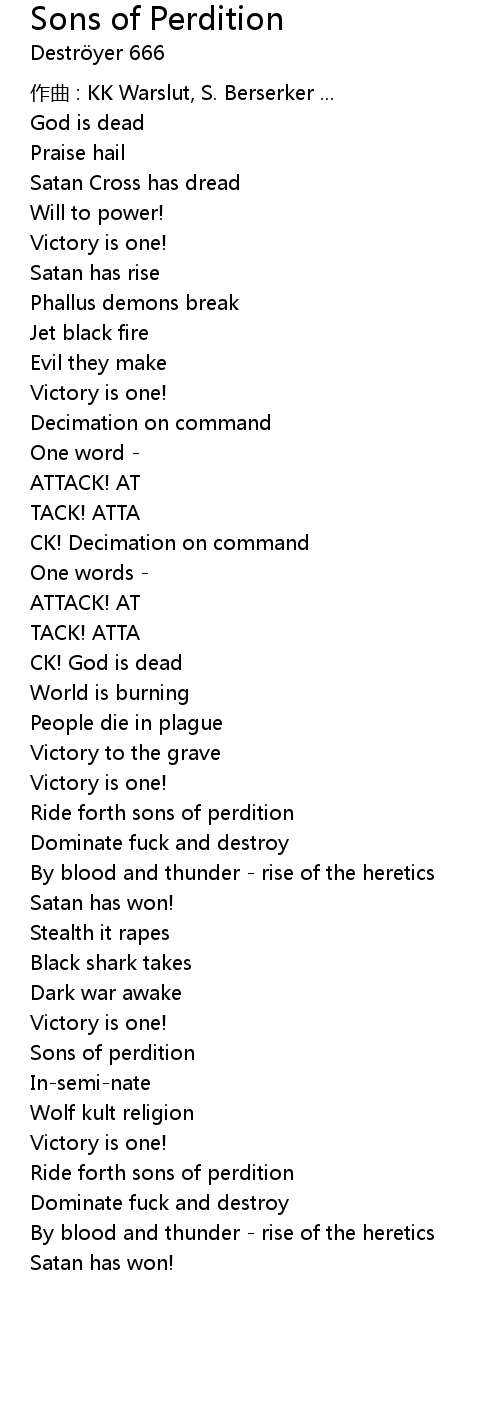 | Ride forth sons of perdition | |