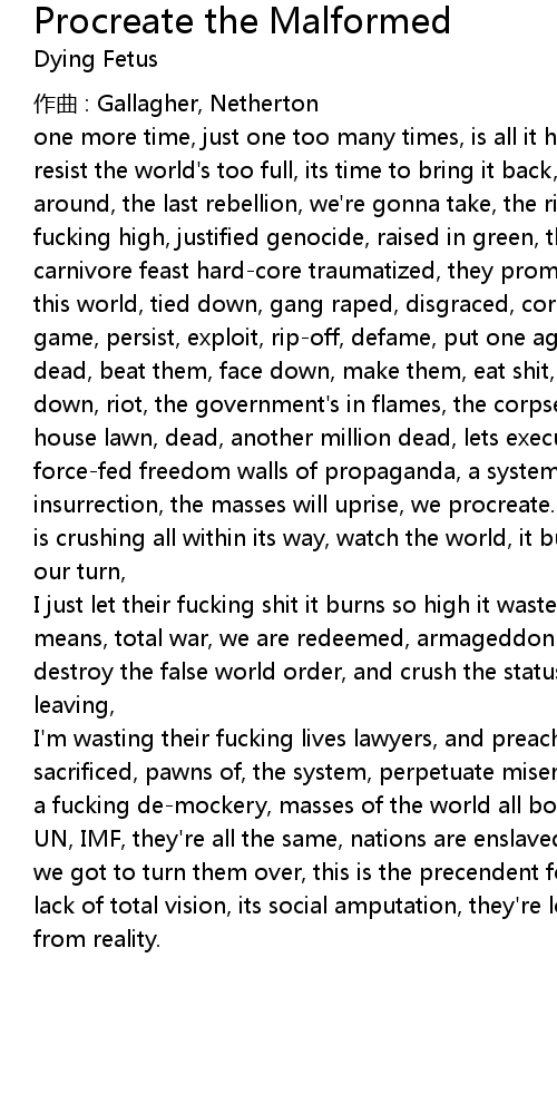 | Song | Procreate the Malformed |