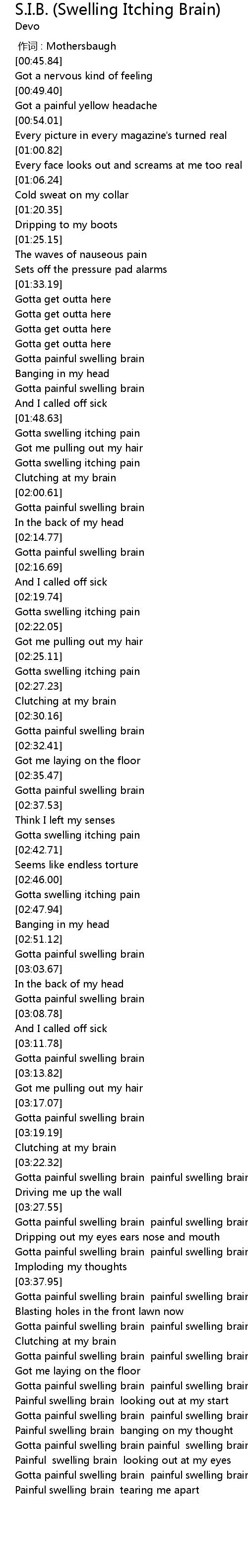 | [03:33.48] | Gotta painful swelling brain painful swelling brain |