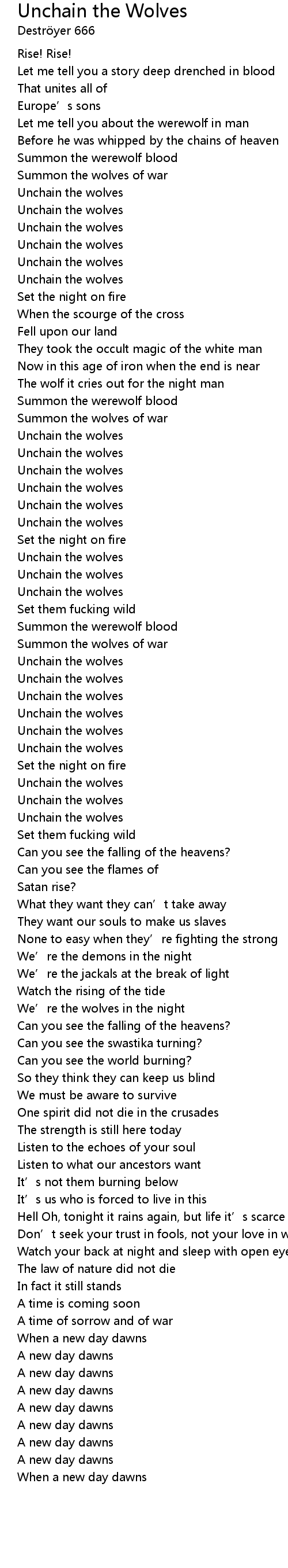 | Unchain the wolves | |