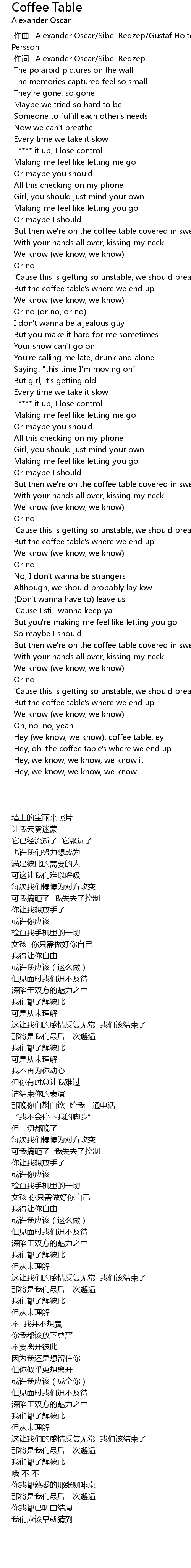| [02:58.438] | Hey, oh, the coffee table' s where we end up |